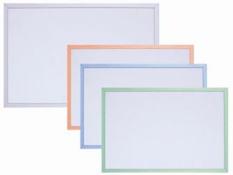 Suitable for office,teaching,display Plastic frame,magnetic white surface,cardboard back,colo printing available,different size 1.Plstic frame,4 corners,any color available. 2.The surface material is painted steel sheet. 3.The core is strong cardboard. 4.the backface is balvanized steel sheet 5.pentray,hangers and 1 eraser and 3 magnets are included 6.with string,easy to hang on the wall or anywhere. color: white frame: Plastic