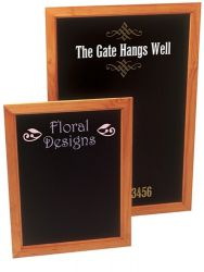 1) Single side chalkboard, good quality surface to write on and wipe off 2) Anodized slivery-white wooden frame